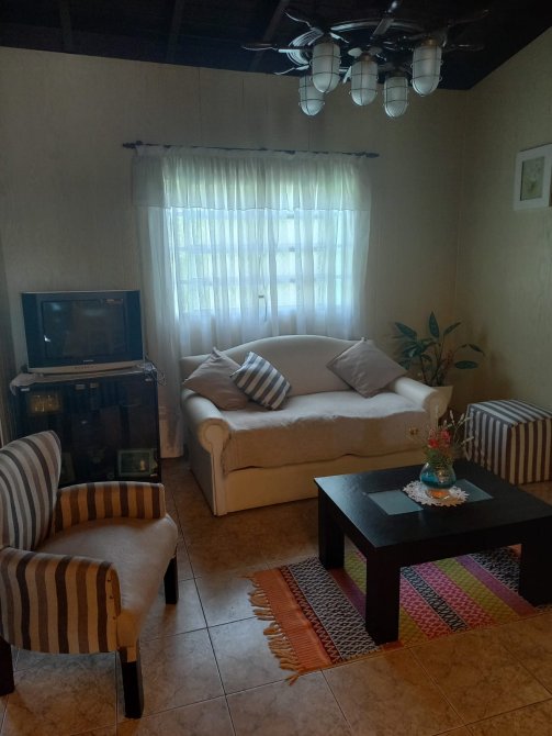Jardín todo con rejas y Porch puerta y ventanas con rejas; Garage,Living Comedor, cocina, Comedor diario, baño, 2 dormitorios,Patio con parrilla y fondo.